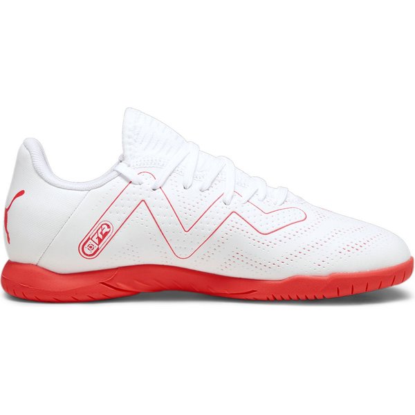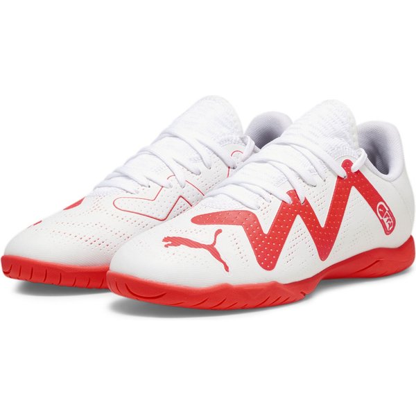 Buty piłkarskie halowe Future Play IT Jr Puma to doskonały wybór dla wszystkich młodych zawodników. Inspirowane stylem gry Neymara Jr, zapewniają szybkie zwroty i zmiany tempa dzięki miękkiej cholewce z większym wsparciem. Dynamic Motion System zapewnia większe wsparcie pięty i elastyczność, a techniczne tekstury zwiększają przyczepność piłki podczas dryblingu. Wąska gumowa podeszwa zewnętrzna zapewnia doskonałą przyczepność na hali. Buty posiadają niski profil, sznurowanie, wzmocnienie na pięcie, elastyczną podeszwę oraz miękki kołnierz wokół kostki. Dodatkowo ozdobione są logiem na boku i języku oraz wzorem zygzakowatym. Idealne dla dzieci pomiędzy 8 a 16 rokiem życia.