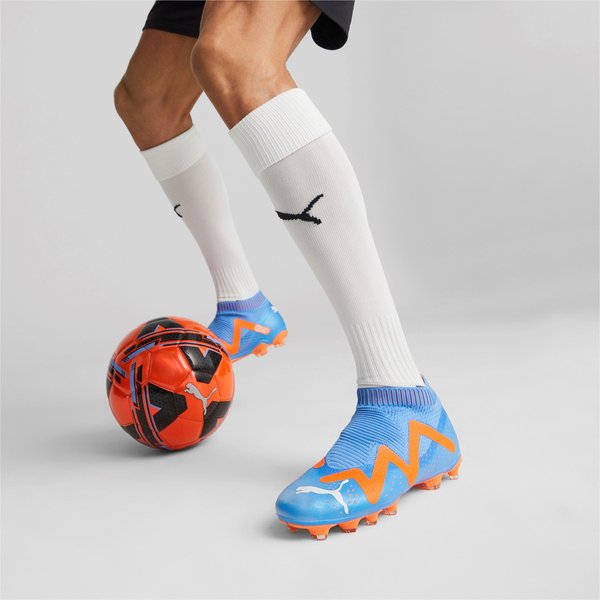 Buty piłkarskie Future Match+ LL FG/AG Puma to idealny wybór dla każdego, kto ceni sobie swobodę ruchów i dynamiczność na boisku. Buty posiadają adaptacyjną technologię kompresji FUZIONFIT, która utrzymuje stopę i umożliwia wykonywanie bardziej dynamicznych ruchów na boisku. Cholewa buta została wykonana w co najmniej 20% z materiałów pochodzących z recyklingu, co stanowi krok ku lepszej przyszłości. Konstrukcja buta jest niewymagająca sznurówek, co pozwala na jeszcze większą swobodę ruchu. Lekka podeszwa zewnętrzna Dynamic Motion System zapewnia stabilność w pięcie i elastyczność w przedniej części stopy, dzięki czemu zapewnia przyczepność i zwinność przy nieprzewidywalnych zmianach kierunku. Buty posiadają także techniczną fakturę 3D, która zapewnia kontakt w najważniejszych strefach i lepszą przyczepność piłki.