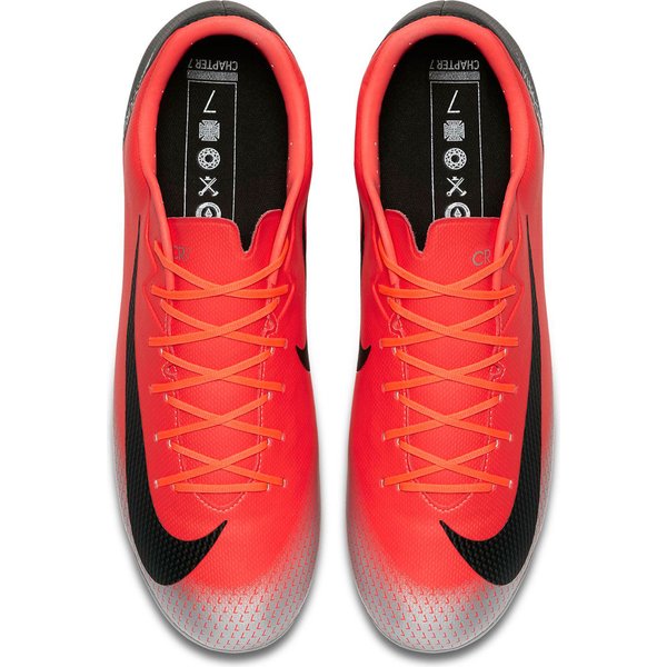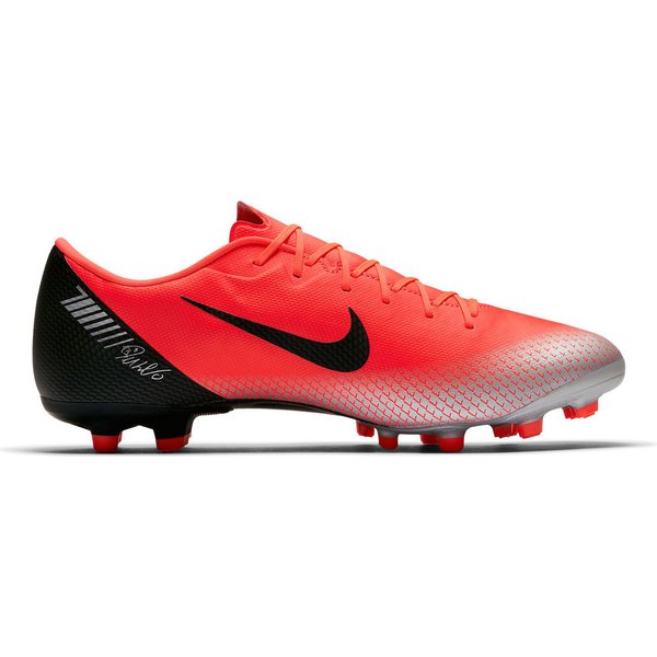 Trenuj na najwyższych obrotach z butami piłkarskimi Mercurial Vapor 12 Academy CR7 marki Nike. Model sygnowany nazwiskiem jednego z najbardziej znanych piłkarzy Cristiano Ronaldo przeznaczony jest do gry na twardej murawie i świetnie się sprawdzi podczas każdej szybkiej rozgrywki. Posiada wytrzymałą i lekką cholewkę z syntetycznej skóry, która dzięki wytłoczonym poziomym wzorom zwiększa kontrolę nad piłką.