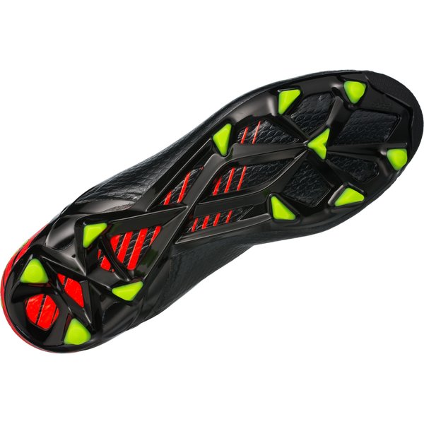 Powierzchnia korków to indywidualnie zaprojektowanamessiTOUCH X-ray, dzięki której gracz ma zapewniony doskonały kontakt z piłką. Konfiguracja korków również nie jest tu standardowa, jest ona bardziej dynamiczna, nazwano ją messiGAMEBETRAX i za jej sprawą przyczepność pod stopami jest zwiększona, a Ty możesz przyspieszać podczas biegu tak gwałtowanie jak Messi. Z kolei konstrukcja messiFRAME otacza stopę jednocześnie ją stabilizując, a co za tym idzie, zwiększając bezpieczeństwo gry. W podeszwie zewnętrznej umieszczono specjalny szkielet, dzięki czemu w korkach Messi 15.1 FG/AG możesz strzelać gole zarówno na naturalnych, jak i sztucznych nawierzchniach.