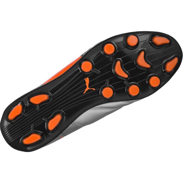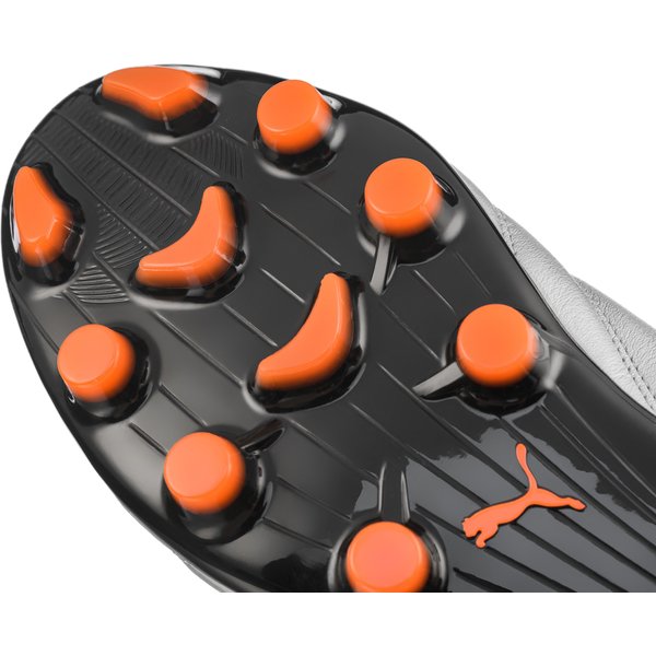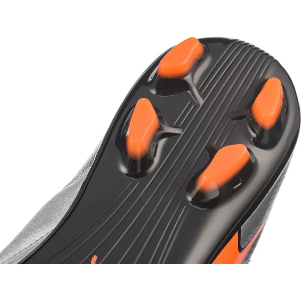 Skórzana cholewka świetnie się prezentuje i łatwo się ją czyści. Ponadto materiał jest wyjątkowo trwały, więc buty będą sprawdzały się przez długi czas. Miękka wyściółka z delikatnie otula ciało, pozwala skórze oddychać i na długo zachować komfortowe uczucie suchości. Wentylację dodatkowo wspiera niski profil. Buty pewnie się trzymają i nie spadają dzięki klasycznemu sznurowaniu. Sportowa sylwetka sprawdza się podczas biegu przez boisko, ułatwia kontakt z piłką. Zewnętrzna podeszwa HG jest przeznaczona zarówno do gry na trawiastej murawie, jak i nawierzchniach sztucznych. Ergonomicznie rozmieszczone plastikowe kołki zapewniają świetną przyczepność.