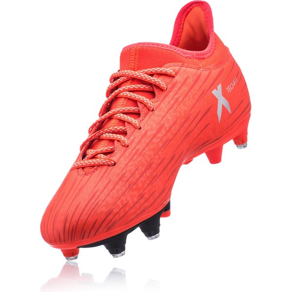 Korki X 16.1 posiadają 1-częściową, kompresyjną cholewkę techfit®, która jest ultralekka i dokładnie dopasowuje się do stopy, dzięki czemu zyskujesz natychmiastowy komfort. Dzięki swojej niewielkiej wadze buty pozwolą Ci rozwijać zaskakujące prędkości na boisku, a do tego nie będą Cię uwierać nawet po długim treningu lub meczu. Podczas tej pogoni za piłką nie musisz się martwić o przyczepność na naturalnych nawierzchniach - dzięki konfiguracji kołków X-CLAW możesz dryblować, gwałtownie przyspieszać i hamować oraz robić kontrolowane wślizgi. Niezawodną stabilizację przy dużych prędkość zapewni Ci specjalne wzmocnienie X-CAGE.