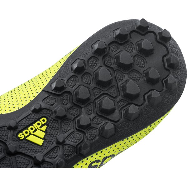 Prezentowane turfy posiadają kompresyjną i lekką cholewkę techfit®, która natychmiast po założeniu perfekcyjne dopasowuje się do Twojej stopy. Cholewka buta jest także pleciona, co Tobie umożliwia naturalną swobodę ruchów stopy. X Tango 17.3 TF posiadają konstrukcję sięgającą kostki, wspierającą wyjątkową stabilizację. To dzięki niej błyskawiczne zmiany kierunku biegu i osiąganie wybuchowych prędkości będzie efektywne i bezpieczne. Zaprojektowana z myślą o grze na murawie gumowa pozwoli Ci osiągnąć maksymalną prędkość na boisku i co najważniejsze, zapewni Ci niezrównaną przyczepność do podłoża.