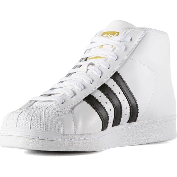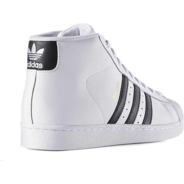 Buty Adidas Superstar w wersji Pro Model o wysokim profilu zostały zaprojektowane z myślą o zawodowych koszykarzach. Dzisiejsza wersja butów z lat 70. nawiązuje do retro designu z gruboziarnistej skóry, uzupełniając go jedyną w swoim rodzaju gumową osłoną paców w kształcie muszli. Trwała konstrukcja zapewnia osłonę stopy oraz jej zabezpieczenie przed urazami, na które gracz narażony jest w trakcie meczu. Tekstylna wyściółka dostarcza wygody, a podeszwa zewnętrzna jest przyczepna i niebrudząca.