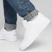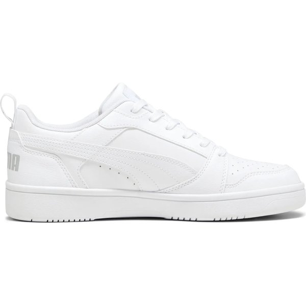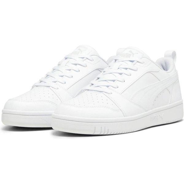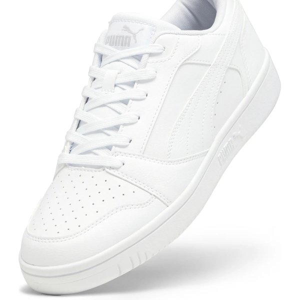 Buty Rebound v6 Low Puma to idealne rozwiązanie dla miłośników stylu sportowego zarówno na boisku, jak i na co dzień. Dzięki niskiemu profilowi i zapięciu na sznurówki zapewniają nie tylko wygodę, ale także stylowy wygląd. Perforacja na przedniej części oraz wzmocnienie na pięcie zapewniają odpowiednią wentylację i stabilność. Dodatkowo, pętelka na pięcie ułatwia ich zakładanie, a logo na bocznej części, języku i pięcie dodaje im charakteru. Teksturowana podeszwa oraz wstawki z różnych materiałów sprawiają, że te buty są nie tylko modne, ale także funkcjonalne. Dzięki materiałom pochodzącym z recyklingu to także ekologiczny wybór dla przyszłości.