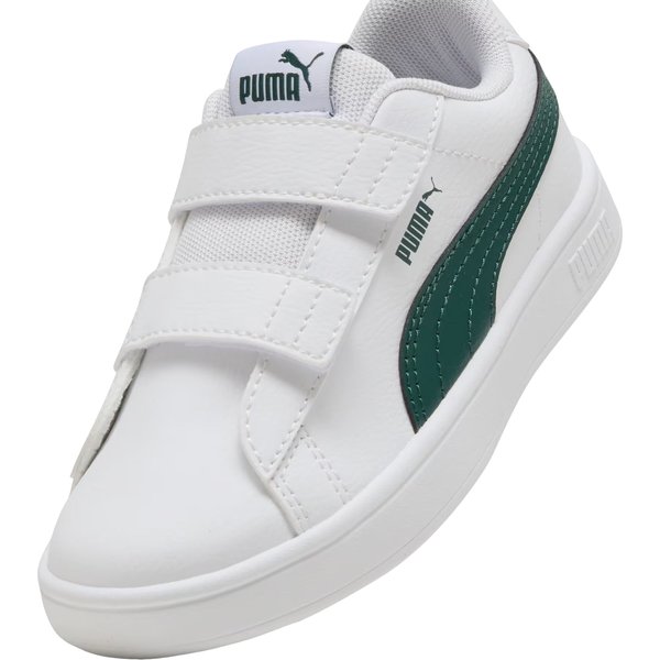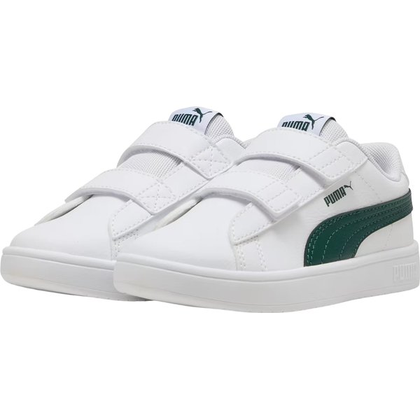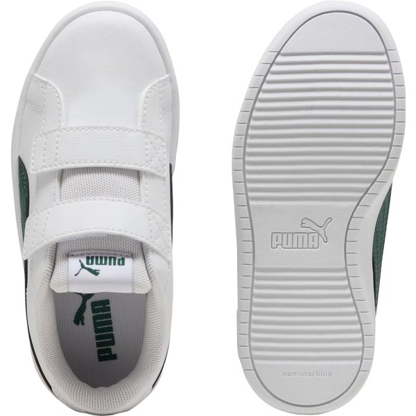 Buty Rickie Classic V PS Jr Puma to idealne rozwiązanie dla dzieci, które cenią sobie wygodę i styl. Wykonane z lekkiej, syntetycznej skóry, zapewniają trwałość i nowoczesny wygląd. Niskoprofilowe sneakersy są wyposażone w podwójne zapięcie na rzepy, co ułatwia szybkie zakładanie i zdejmowanie. Tekstylna wyściółka dba o komfort noszenia, a gumowa podeszwa gwarantuje doskonałą przyczepność na różnych nawierzchniach. Wzmocniony zapiętek dodaje stabilności, a logo podkreśla unikalny design. Te buty łączą w sobie funkcjonalność z modnym wyglądem.