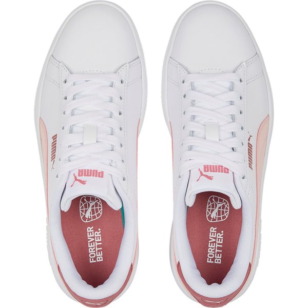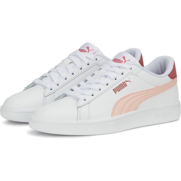 Buty Smash 3.0 L Jr Puma to kolejna generacja kultowych butów Puma Smash. Ich miękka skórzana cholewka z nowym wzorem oczek, wszyte wyściełanie z miękkim kołnierzem i nowy design pięty z logo Cat to świeże spojrzenie na klasyczny styl. Dzięki wkładce SoftFoam+ zapewniają doskonałą amortyzację i optymalny komfort na każdym kroku przez cały dzień. Idealne buty lifestyle dla osób, które cenią sobie komfort i wysoką jakość.