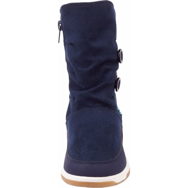 Wysokie botki Kappa są nie tylko przytulnie wyściełane i nie powodują otarć, ale także utrzymują stopy w cieple nawet podczas chłodnych jesiennych, a nawet zimowych dni. Buty Cream T od Kappy są niezwykle ciepłe dzięki sztucznemu futerku, którym jest pokryte całe wnętrze buta. Model ten jest zapinany na zamek błyskawiczny z boku. Został wykonany z łatwego do pielęgnacji materiału i wyposażony w dwa ozdobne guziki. Dzięki takiemu designowi, doskonale komponują się z wąskimi spodniami, ale także z sukienką czy spódnicą z rajstopami. Płaska, ale gruba podeszwa zapewnia maksymalny komfort podczas użytkowania. Masz pewność, ze nie poczujesz żadnego kamyka czy nierówności podczas chodzenia. Dzięki tym butom za kostkę Twoja szafa zyska nowy ulubiony produkt. Po bokach zostało także umieszczone logo marki Kappa.