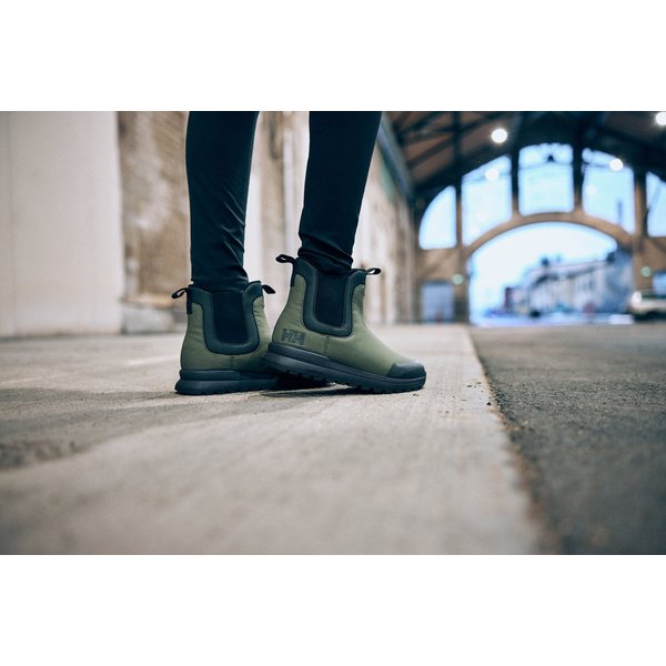 Design butów Lynn Wm's Helly Hansen łączy w sobie elegancję i praktyczność. Gładka powierzchnia zewnętrzna, brak sznurowadeł oraz wzmocnione noski nadają im klasyczny wygląd, który doskonale komponuje się zarówno z casualowymi, jak i bardziej eleganckimi stylizacjami. Logo marki na boku i podeszwie podkreśla wysoką jakość i prestiż marki. Waga butów wynosząca zaledwie 300 gramów sprawia, że są one lekkie i komfortowe w noszeniu, a ich wytrzymała konstrukcja gwarantuje długą żywotność. Dodatkowo, technologia HH Quick Dry zapewnia szybkie schnięcie, co jest szczególnie przydatne w deszczowe dni.