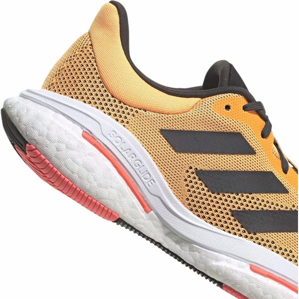 Ich siatkowa cholewka zapewnia odpowiednią wentylację i przewiewność, co eliminuje uczucie dyskomfortu podczas intensywnego biegania. Dodatkowo, została ona wykonana w co najmniej 50% z przetworzonego plastiku, zebranego w nadmorskich miejscowościach, co zapobiega zanieczyszczeniu oceanów. Ważnym elementem konstrukcji butów Solarglide 5 jest wzmocnienie w okolicy pięty, które zapewnia dodatkowe wsparcie i chroni stopy przed kontuzjami.