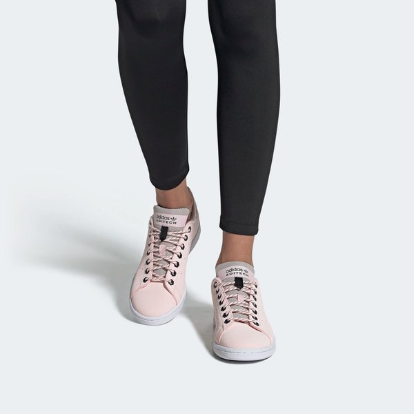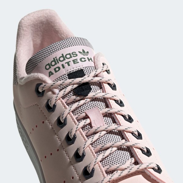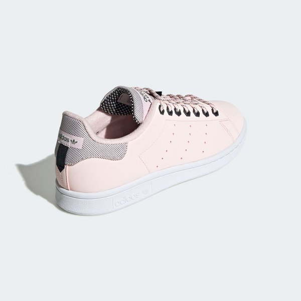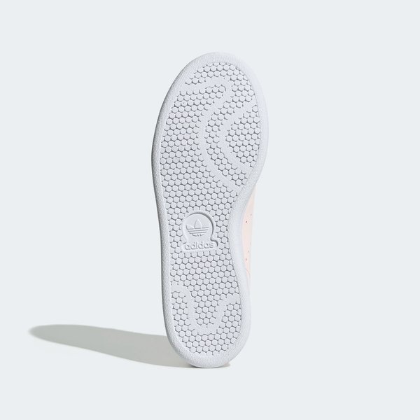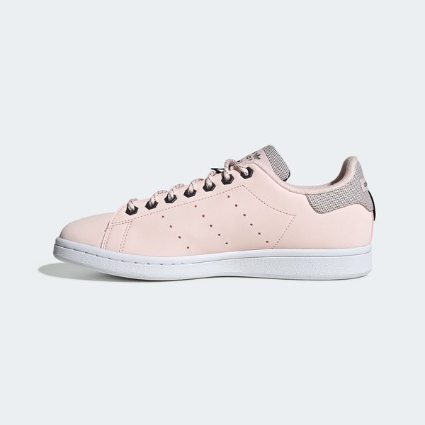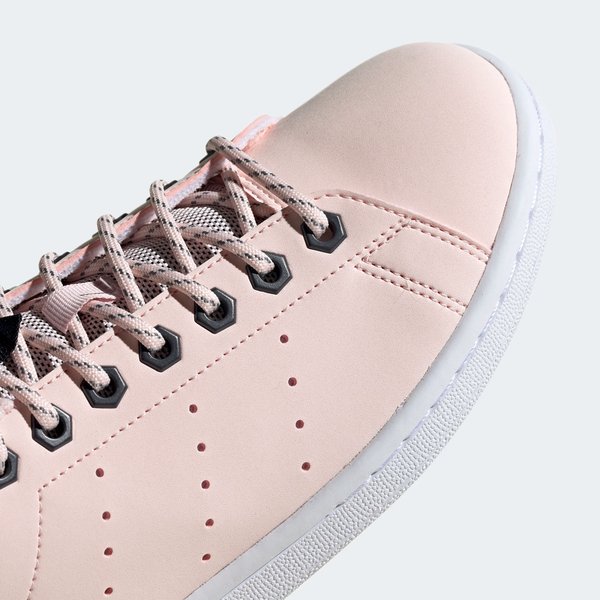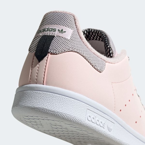 Gładka cholewka w butach Stan Smith wykonana jest z syntetycznego nubuku, a dzięki swojej dziewczęcej kolorystyce obuwie będzie pasować do każdej stylizacji. Tonalna podeszwa zewnętrzna zrobiona jest z wytrzymałej na przetarcia gumy, natomiast miękka wyściółka ze skóry syntetycznej to gwarancja komfortu. Dodatkową zaletą są ozdobne detale w postaci perforowanych 3 pasków po bokach oraz kontrastowej wstawki z logo na pięcie, dzięki którym model ten wyróżnia się na tle innych.