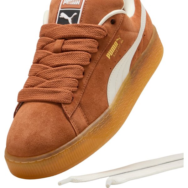 Buty Suede XL Wm's Puma to idealne połączenie stylu i wygody, które doskonale wpisuje się w nowoczesny lifestyle. Inspirowane dziedzictwem breakdance'u, te sneakersy oferują unikalny, wyrazisty design. Dzięki zamszowej cholewce i skórzanemu paskowi Puma Formstrip, buty te prezentują się elegancko i nowocześnie. Gruba, płaska podeszwa zapewnia komfort noszenia, a gumowa podeszwa zewnętrzna gwarantuje doskonałą przyczepność. Wyściełany kołnierz i język dodatkowo zwiększają wygodę, a siateczkowa wkładka i podszewka zapewniają przewiewność. Dodatkowe sznurówki pozwalają na personalizację stylu, czyniąc te buty nie tylko praktycznym, ale i modnym wyborem.