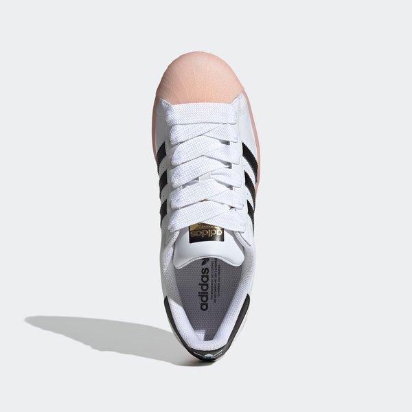Gruba, elastyczna podeszwa z wysokostandardowej gumy dopasowuje się do ruchu stóp, nieco amortyzuje i pozwala na wygodny chód. Miękka wyściółka wewnątrz z przewiewnej siateczki zapewnia optymalną wentylację i pozwala utrzymać komfortowe poczucie suchości i świeżości. Skórzana cholewka delikatnie otula nogę, a mocne wiązanie z szerokimi sznurowadłami zapewnia komfortowe dopasowanie. Typowe dla serii Superstar noski typu shell toe korzystnie się prezentują. To idealna para dla osób, które cenią sobie miejską elegancję.