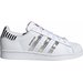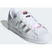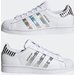 Odświeżony design butów Superstar oferuje ponadczasową kolorystykę. Klasyczna gumowa osłona palców połączona została ze skórzaną cholewką, która gwarantuje uczucie miękkości i maksimum wygody. Oryginalna gumowa podeszwa to gwarancja wytrzymałości i odporności na przetarcia, natomiast wzór w jodełkę podeszwy zewnętrznej zapewni Ci optymalną przyczepność. Całość dopełniają 3 ząbkowane paski, logo Adidas na pięcie oraz szeroki i gruby język, który swoją fakturą podkreśla wyjątkowość butów Superstar!
