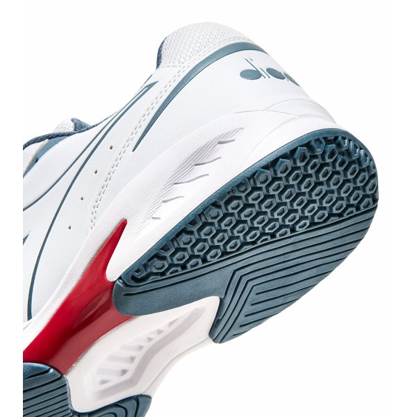 Buty tenisowe Volee 6 Diadora to idealny wybór dla początkujących tenisistów. Dzięki niskiemu profilowi i specjalnej podeszwie zewnętrznej TPR zapewniają doskonałą przyczepność na twardych nawierzchniach i kortach ziemnych. Cholewka wykonana z SuprellTech i siateczki zapewnia przewiewność i komfort noszenia. Buty posiadają perforację na przedniej części cholewki, wzmocnienie w okolicy palców oraz stabilizujący element śródstopia. Dodatkowo, są wyposażone w miękką wyściółkę wokół kostki oraz wkładkę wewnętrzną, zapewniającą jeszcze większy komfort podczas gry. Buty Volee 6 Diadora to nie tylko funkcjonalność, ale również stylowy design.