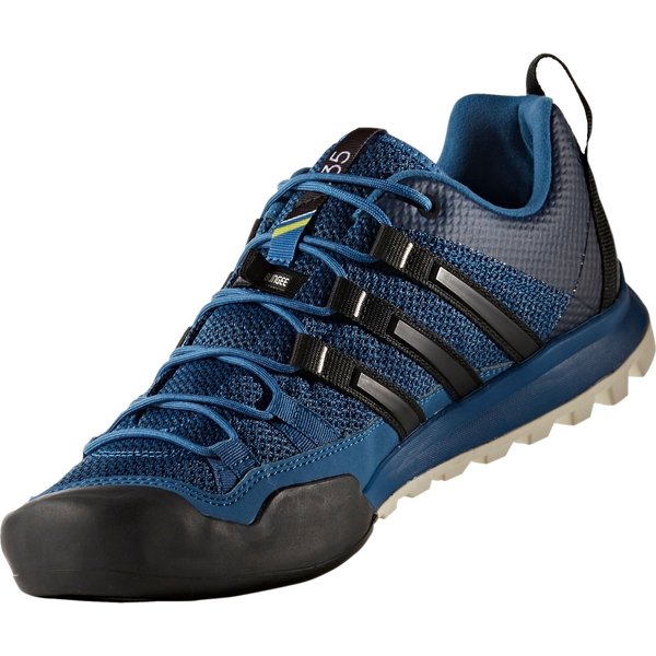 Mocna, a jednocześnie oddychająca konstrukcja sprawia, że buty są niemal nie do zdarcia. Pętle z tyłu butów dają możliwość ich przyczepienia do plecaka lub uprzęży wspinaczkowej, co ułatwia transport na skałki! Podeszwa zewnętrzna Stealth® zapewnia wysoką przyczepność do każdej, nawet najtrudniejszej nawierzchni. Z kolei pochłaniająca wstrząsy miękka pianka EVA oraz technologia adiPRENE+, zapewniają jednocześnie świetną amortyzację krok po kroku i... skała po skale! Buty doskonałe również na co dzień, sprawdzą się świetnie jako obuwie całoroczne.