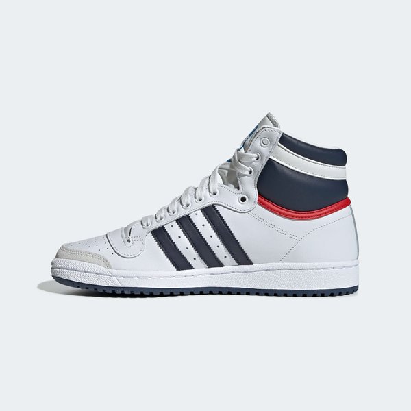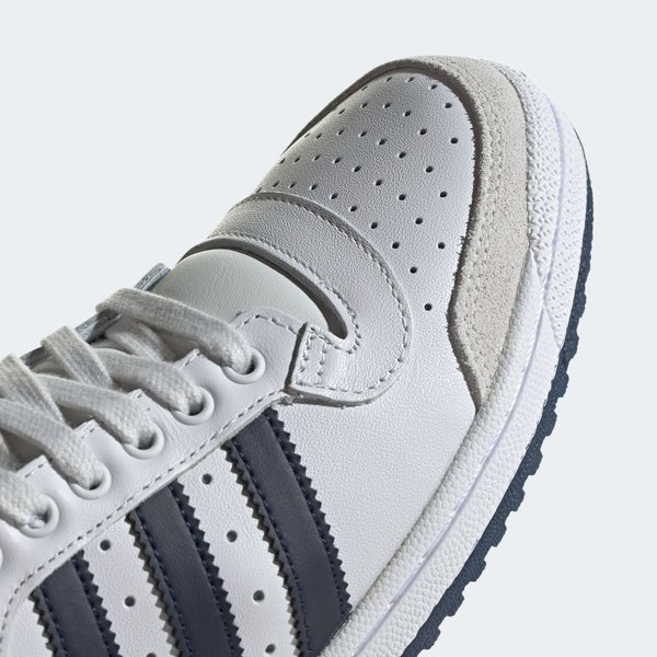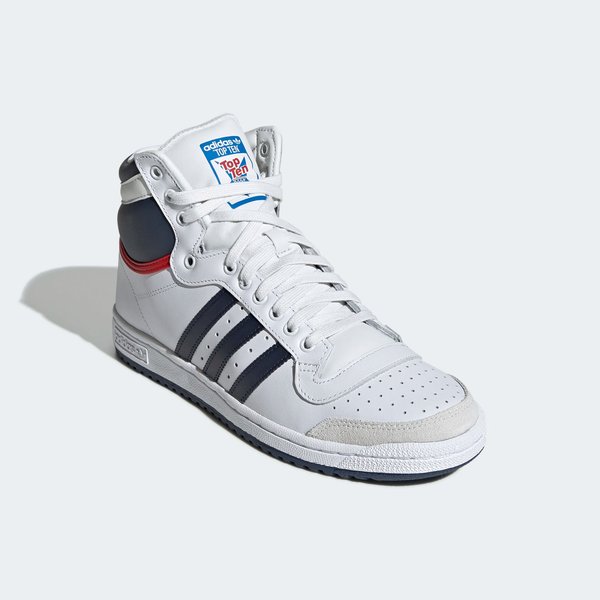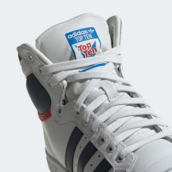 Top Ten Hi marki Adidas Originals to model, który swoją premierę miał w 1979 roku i dedykowany był dla 10 najlepszych graczy NBA. Ten lifestylowy model ma skórzaną cholewkę i miękko wyścielony kołnierz. Średniej wysokości cholewki zapewnia komfort noszenia i odpowiednio stabilizuje stopę w bucie. Przyczepna i niebrudząca podeszwa zewnętrzna gwarantuje znakomitą przyczepność.