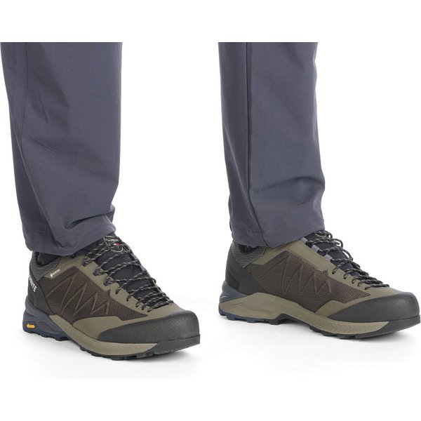 Dzięki podeszwie Crodarossa, buty zapewniają doskonałe dopasowanie do stopy, co gwarantuje komfort i stabilność w każdym terenie. Obszar pięty został wykonany z miękkiej pianki EVA, która zapewnia doskonałą amortyzację i ochronę przed uderzeniami. Natomiast przednia część jest sztywniejsza i zawiera strefę wspinania się na palce, co zwiększa precyzję i podtrzymuje ciężar użytkownika na małych półkach i pęknięciach. Podeszwa zewnętrzna, wykonana z mieszanki gumy Vibram Megagrip, zapewnia doskonałą przyczepność i łamanie podczas zjazdów i podjazdów, a system Wrapping umożliwia stopie naturalne ruchy. Dodatkowo, buty posiadają wyściółkę GORE-TEX 3L, co zapewnia wodoodporność i oddychalność. Cholewka z siateczki w podeszwie środkowej zapewnia oddychalność i lekkość, a regulowane dopasowanie sznurowaniem do palców i zapięciem na całej długości gwarantuje idealne dopasowanie. Niski profil butów zapewnia pełną swobodę ruchów, która jest niezwykle istotna podczas jakiejkolwiek aktywności fizycznej..