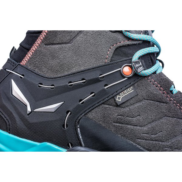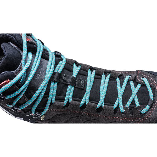 System sznurowania zastosowany w modelu MTN Trainer Mid GTX od marki Salewa sięga do prawie samego czubka buta. Gwarantuje to najlepsze dopasowanie buta do stopy i zapewnia doskonałe wsparcie nawet na trudnym terenie.