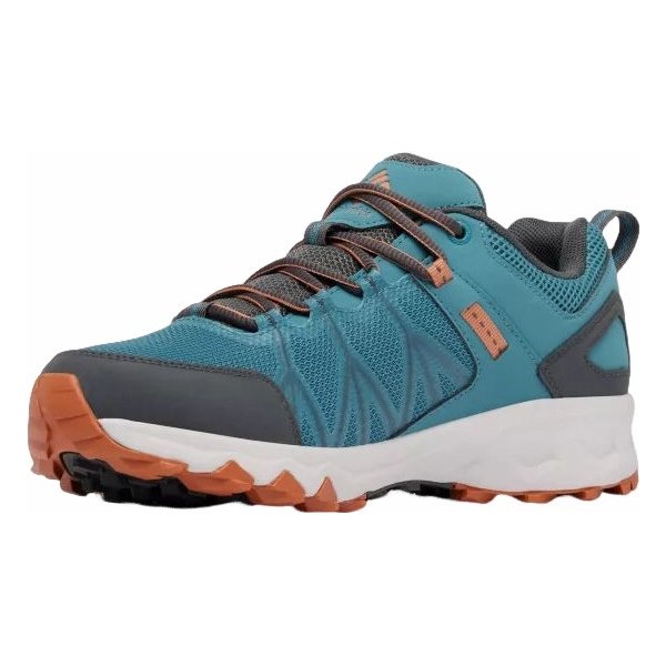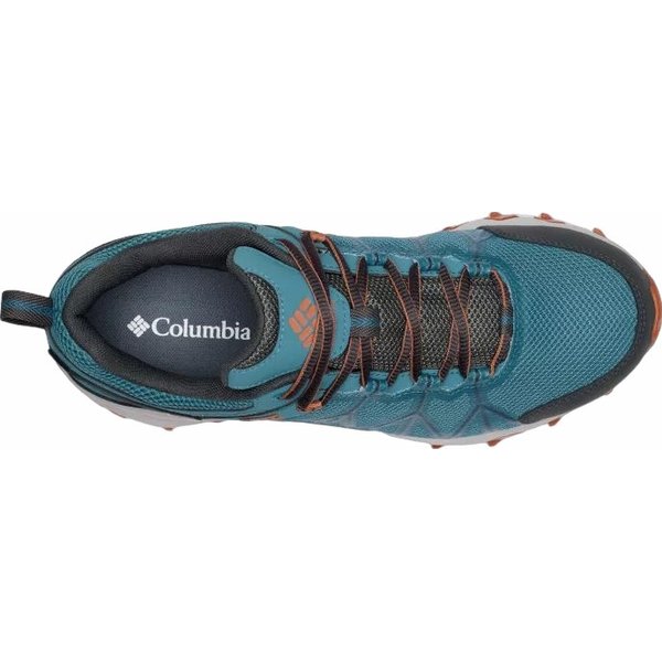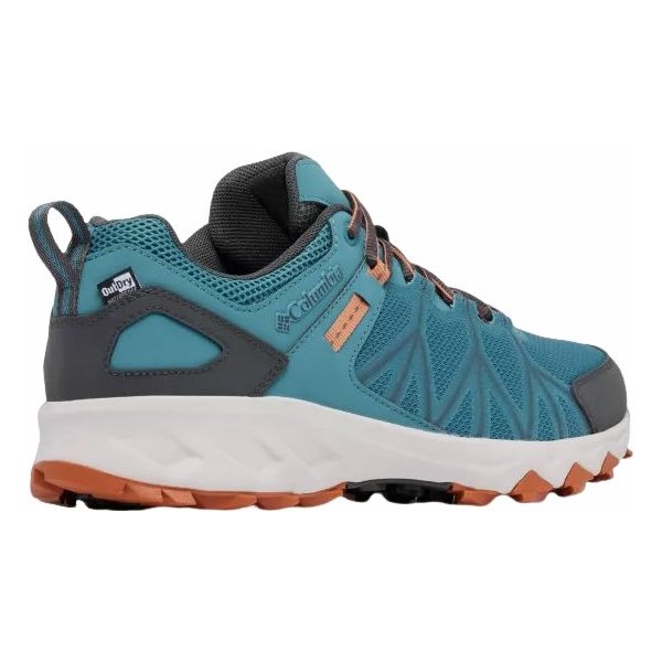 Buty Peakfreak II OutDry mają również wiele praktycznych rozwiązań. System sznurowania i bezszwowa siatka zapewniają doskonałe dopasowanie butów do kształtu stopy, a Navic Fit System zapewnia naturalną blokadę śródstopia. Dodatkowo, miękki kołnierz wokół kostki oraz wzmocnienia w okolicy palców i pięty gwarantują pełną ochronę i wsparcie podczas chodzenia. Buty mają również niski profil, co dodaje im sportowego i atrakcyjnego wyglądu. Na języku i bocznej stronie butów znajduje się logo marki Columbia, co stanowi dodatkowy element stylizacyjny.
