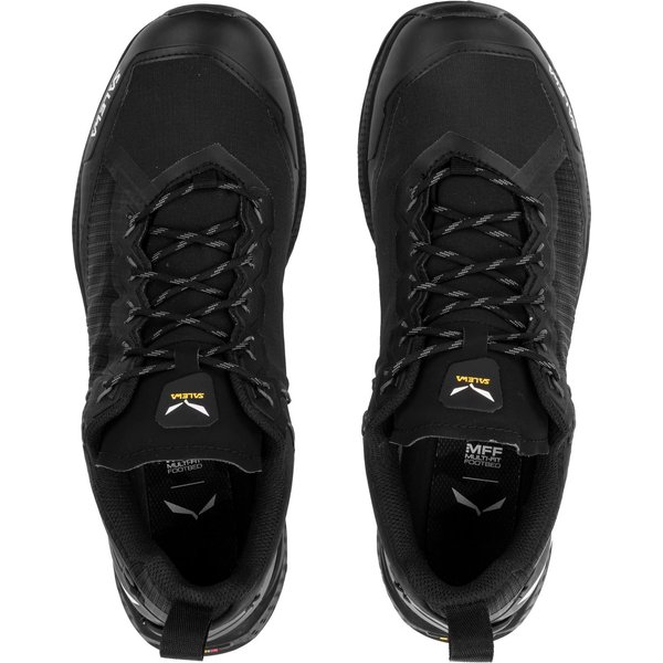 Dodatkowego wsparcia w trudnym terenie dostarcza mocna cholewka z siateczki ripstop oraz rant TPU, które gwarantują wysoką odporność na ścieranie. Dzięki temu użytkownik może czuć się pewnie na nierównych nawierzchniach, a buty zachowują swój wygląd i funkcjonalność przez długi czas. Zintegrowany system Salewa 3F dodatkowo zwiększa stabilność i wsparcie, co przekłada się na lepszą kontrolę i pewność każdego kroku. Podczas wędrówki po różnorodnym terenie, jak błoto, trawa czy skały, kluczową rolę odgrywa podeszwa zewnętrzna Speed Hiker Pro. Jej specjalnie zaprojektowany bieżnik oferuje optymalne połączenie stabilności i przyczepności. Wzmacnia to także elastyczna podeszwa środkowa z EVA, która zapewnia doskonałą amortyzację i komfort na każdym kroku, zmniejszając zmęczenie stóp.