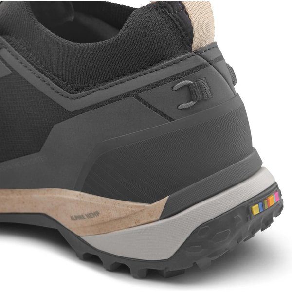 Podeszwa środkowa Alpine Hemp, wykonana z włókien konopnych i przetworzonych resztek tekstyliów, nie tylko zmniejsza zużycie pianki EVA, ale również nadaje butom zrównoważony charakter bez wpływu na ich wydajność. Długotrwały komfort użytkowania jest osiągnięty dzięki zastosowaniu podwójnej gęstości EVA. Stopniowana sztywność oraz miększa strefa pięty zapewniają optymalną amortyzację, co znacząco zwiększa wygodę podczas długotrwałego noszenia. Dodatkowo miękka, konfigurowalna wkładka CFF z recyklingu oraz dodatkowa wkładka Volume Reducer pozwalają na jeszcze lepsze dopasowanie butów do indywidualnych potrzeb.