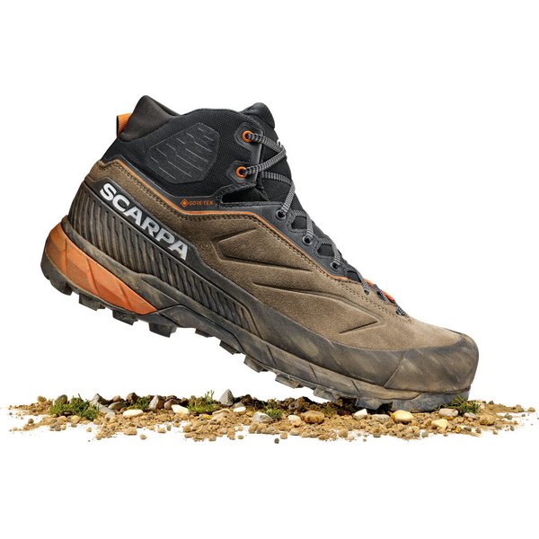 Podeszwa Vibram MegaGrip to kolejny element, który wyróżnia buty Rapid XT Mid GTX Scarpa. Wyposażona w strefę wspinaczki na palcach i system hamulcowy z tyłu, oferuje niezrównaną przyczepność oraz stabilność na zróżnicowanych nawierzchniach. Wkładka 3D TPU w obszarze środkowym dodatkowo wspiera stopę, zapewniając optymalną stabilność podczas pokonywania trawersów. Głębokie bieżniki o średnicy 3,5 mm gwarantują doskonałe trzymanie nawet na śliskiej powierzchni. Estetyka i praktyczność idą tu w parze. Logo umieszczone na boku i języku dodaje charakteru i świadczy o wysokiej jakości wykonania.