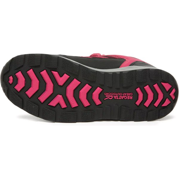 Buty posiadają elastyczny system sznurowania oraz zapięcie na rzep, które pozwoli na samodzielne zakładanie butów przez Twoją pociechę. Model ten posiada klejone szwy, materiał Isotex i wykończenie Hydropel, co zapewnia wysokie właściwości wodoodporne i ochronę przed przemoczeniem. Dziecko będzie mogło swobodnie bawić się w deszczu i skakać po kałużach bez obawy o przemoczenie. Cholewka jest lekka i oddychająca, dzięki czemu zapewniony jest wysoki komfort i świeżość przez cały dzień. Model ten posiada wytrzymałą i antypoślizgową podeszwę dla większego bezpieczeństwa. Zapewnia także doskonałą amortyzację i absorbuje wstrząsy. Te trekkingowe buty doskonale sprawdzą się podczas górskich wycieczek oraz leśnych spacerów i zagwarantują wysoki komfort i bezpieczeństwo Twojemu dziecku.
