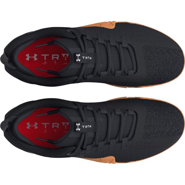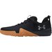 Podeszwa środkowa, zaprojektowana z myślą o różnorodnych potrzebach sportowców, oferuje podwójną gęstość. Jest bardziej miękka w przedniej części stopy, co zwiększa komfort, a jednocześnie mocniejsza w obszarze pięty, co zapewnia stabilność i wsparcie podczas podnoszenia ciężarów. Taka kombinacja pozwala na pełne skoncentrowanie się na treningu bez konieczności martwienia się o komfort i wsparcie stóp. Technologia UA TriBase w podeszwie maksymalizuje kontakt z podłożem, co wspomaga naturalny ruch stopy i zapewnia elastyczność oraz przyczepność podczas podnoszenia. To pozwala na lepsze wyczucie podłoża i przekazywanie mocy, co jest kluczowe podczas intensywnych ćwiczeń siłowych i dynamicznych ruchów. Podeszwa zewnętrzna z pełnej gumy otacza boki buta, co zapewnia dodatkową trwałość i odporność na ścieranie. Odpowiednia przyczepność, zwłaszcza w obszarze środkowym, jest kluczowa w przypadku treningów z liną, co czyni te buty idealnym wyborem na różnorodne aktywności. Dla lepszej przyczepności, buty zostały wyposażone w strategicznie rozmieszczoną gumową konstrukcję pod palcami. To rozwiązanie pozwala na pewniejszy krok, zwłaszcza podczas dynamicznych zmian kierunku.