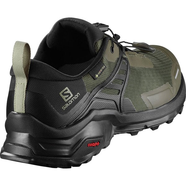 Obuwie X Raise marki Salomon zaprojektowano z myślą miłośnikach górskiej turystyki zarówno w trudniejsze jak i lżejsze tereny. Cała cholewka wraz z podeszwą zostały pokryte popularną membraną Gore-Tex™, która wykazuje właściwości wodoodporne i chroni przed przemoczeniem.