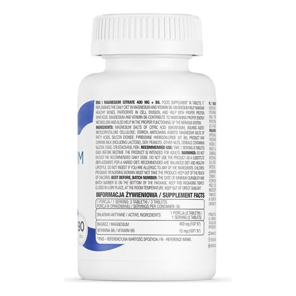 Cytrynian magnezu Magnesium Citrate 400mg + B6 90kaps. OstroVit