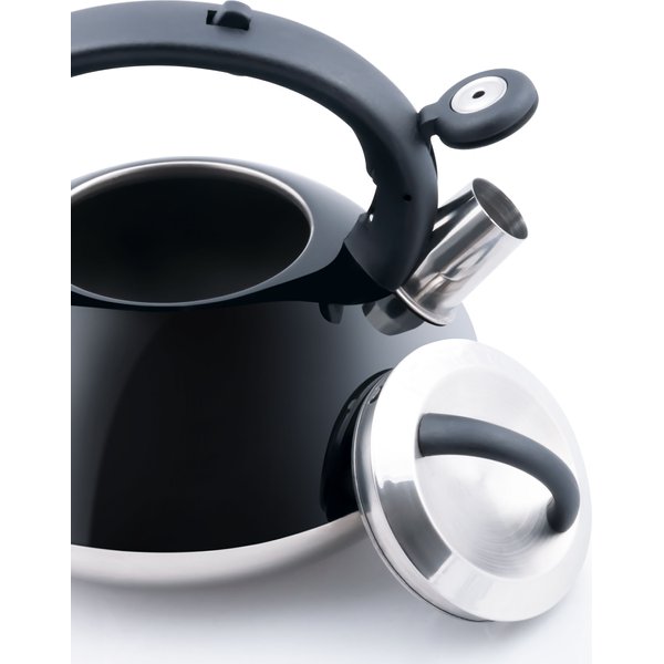 Pojemność czajnika to aż 2,6L co pozwoli na przygotowanie napojów dla kilku osób jednocześnie. Claudio jest kompatybilny z wszystkimi typami kuchenek, także indukcyjnymi. Wykonanie z najwyższej jakości stali przekłada się na jego długą żywotność. Gdy usłyszysz dźwięk gwizdka sygnalizujący zagotowanie się wody śmiało chwyt za wyprofilowany, nienagrzewający się uchwyt i zaparz napoje. Claudio posiada zdejmowaną pokrywę ułatwiającą czyszczenie oraz nalewanie wody, w czym pomocny jest również duży otwór wlewowy. Czajnik jest zgrabny dzięki kompaktowym wymiarom a jego estetyczny wygląd to zasługa połączenia czarnego koloru ze stalą nierdzewną o wysokim połysku.