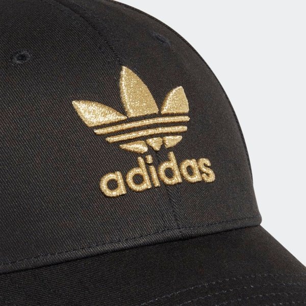 Klasyczna czapka z daszkiem Adicolor Gold Baseball marki Adidas Originals wyróżnia się wyszywanym złotą nicią logo Trefoil na przednim panelu. Bawełniana konstrukcja zapewnia wysoki komfort noszenia, a filtr UV 50 zapewnia optymalną ochronę przed promieniowaniem słonecznym.