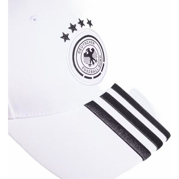 Czapka z daszkiem Germany Football Adidas to idealna propozycja dla fanów reprezentacji Niemiec. Wykonana z materiałów pochodzących z recyklingu, dbając o środowisko. Daszek lekko wygięty chroni oczy przed słońcem, a regulowany pasek z tyłu zapewnia idealne dopasowanie. Wyszywane godło reprezentacji Niemiec na główce czapki dodaje jej charakteru. Czapka posiada logo z przodu, pasy na daszku, logo na boku oraz wytrzymałą konstrukcję. Dodatkowo wyposażona jest w otwory wentylacyjne, zapewniające komfort noszenia, nawet podczas gorących dni. Ciesz się wsparciem dla swojej drużyny w dobrym stylu!