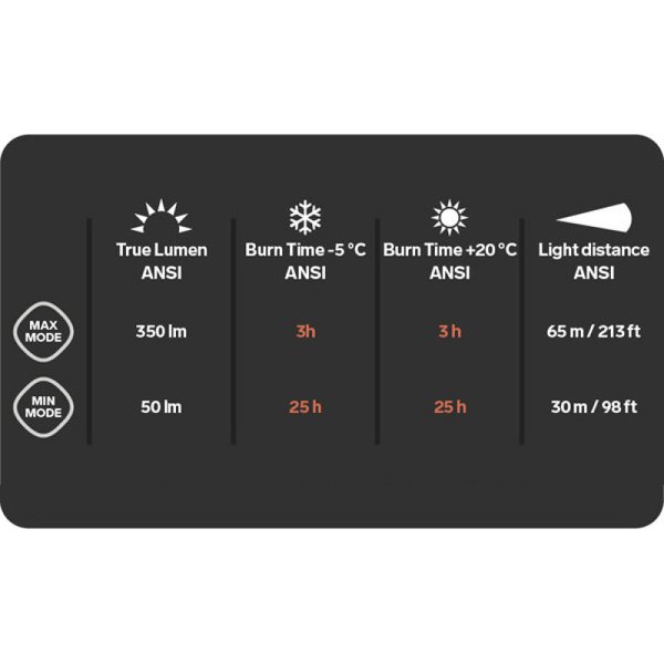 - maksymalna moc: 350 lumenów