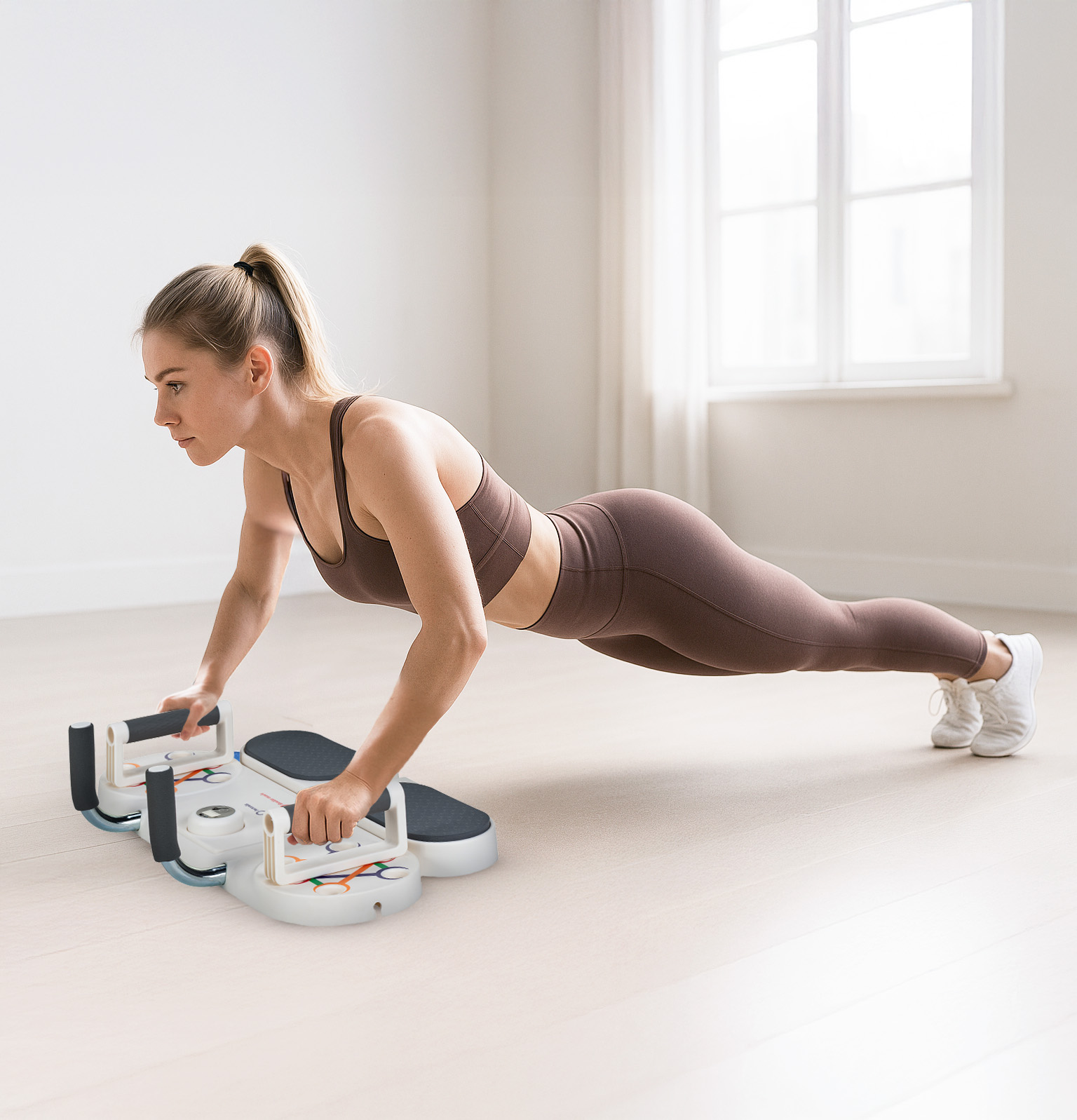 Deska wyróżnia się przemyślanym systemem, który dzięki regulowanym uchwytom pozwala na wykonywanie różnorodnych ćwiczeń angażujących całe ciało. Zróżnicowane ustawienia uchwytów umożliwiają precyzyjne ukierunkowanie wysiłku na konkretne grupy mięśniowe, zapewniając skuteczny i wszechstronny trening bez potrzeby użycia dodatkowego sprzętu.