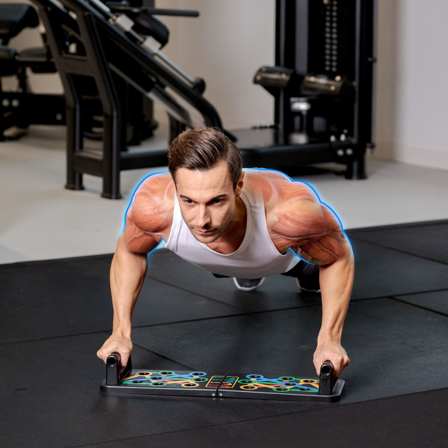 - Wsparcie dla techniki wykonywania pompek: Dzięki uchwytom ustawionym pod różnymi kątami użytkownik może wykonywać pompki w optymalnych pozycjach, zmniejszając obciążenie nadgarstków i angażując mięśnie w sposób bardziej efektywny. To Idealne narzędzie do bodźcowania mięśni, które pozwala skutecznie aktywować różne partie ciała i maksymalizować efekty treningu.