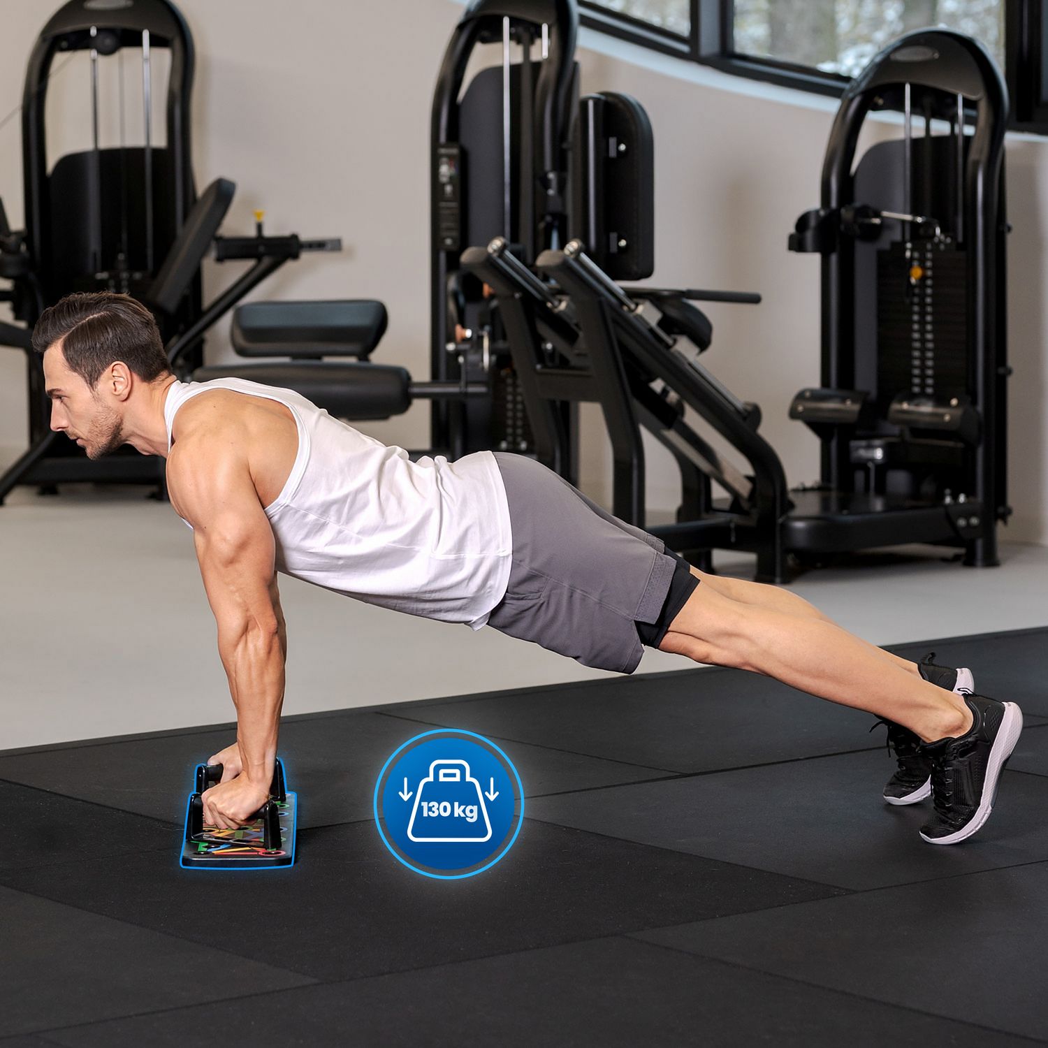 - Optymalne wsparcie dla techniki pompek: Dzięki uchwytom ustawionym pod różnymi kątami użytkownik może wykonywać pompki w optymalnych pozycjach, zmniejszając obciążenie nadgarstków i angażując mięśnie w sposób bardziej efektywny.