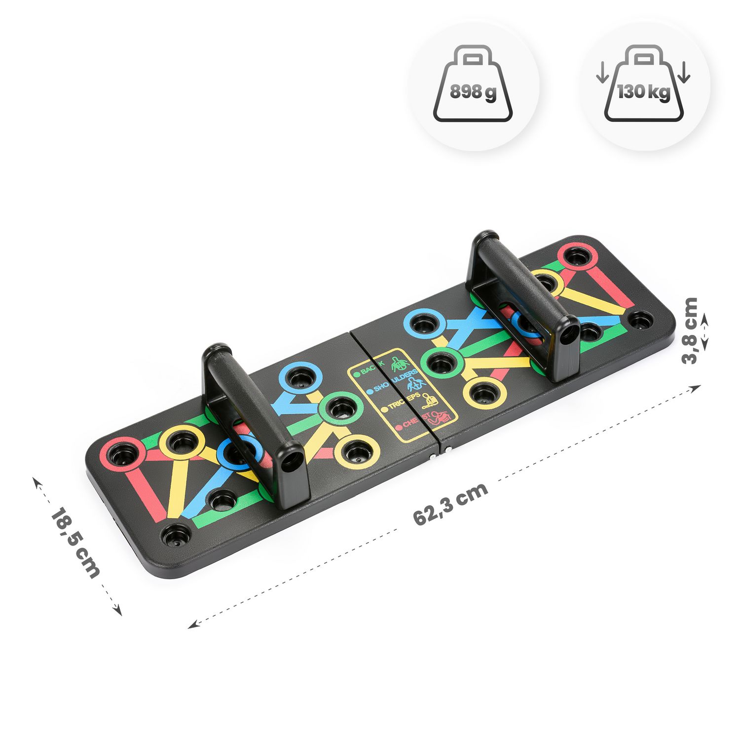 Deska została zaprojektowana z myślą o wygodzie użytkowania – jej lekka, składana konstrukcja sprawia, że użytkownik może ją łatwo przechowywać i transportować. Dzięki temu jest idealnym rozwiązaniem zarówno do domowego treningu, jak i ćwiczeń w plenerze.