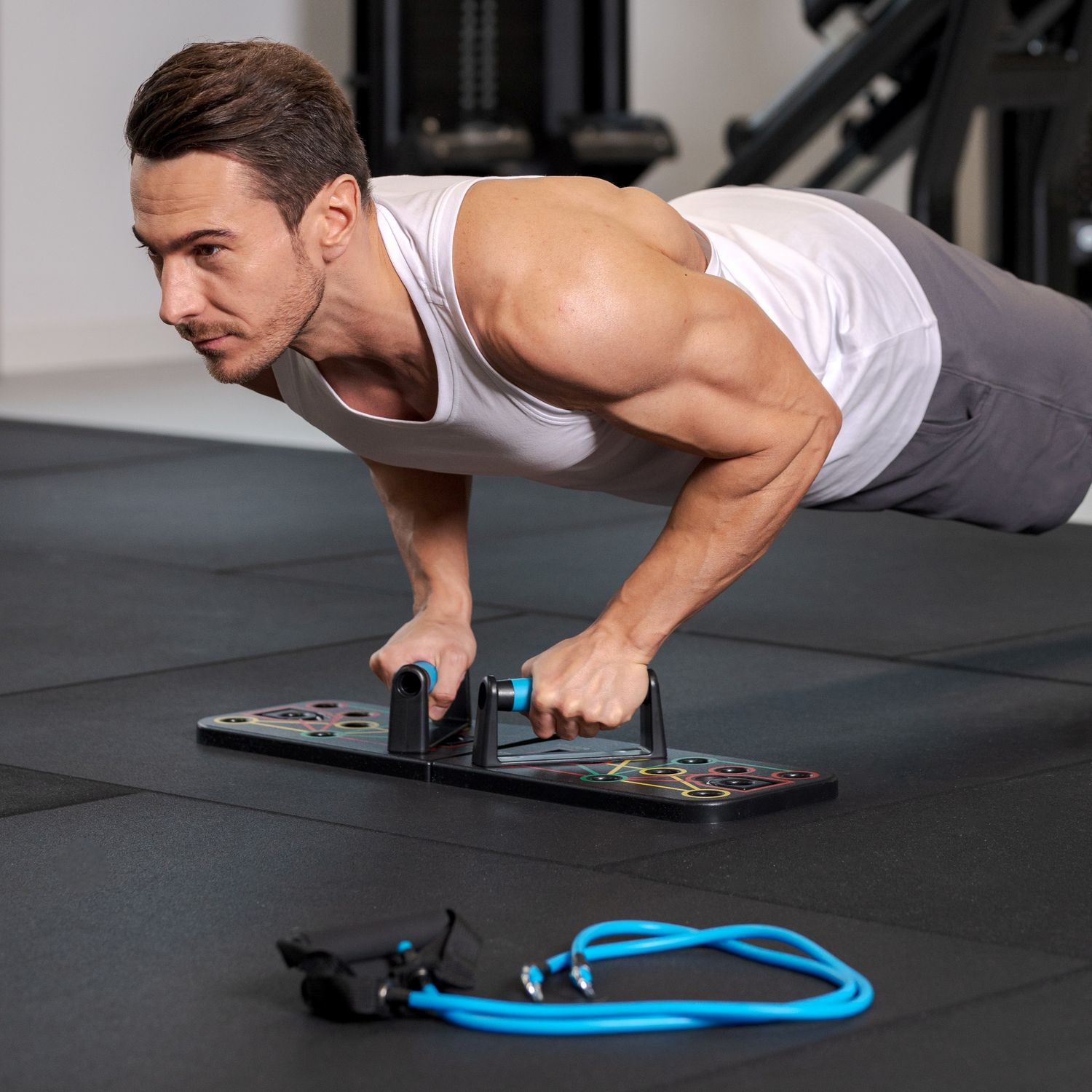 Deska z uchwytami i ekspanderami Gymtek to kompaktowe narzędzie, które pozwala urozmaicić domowy trening siłowy bez potrzeby korzystania z dużego sprzętu. Ruchome uchwyty można ustawić w różnych konfiguracjach, by aktywować konkretne grupy mięśni i skutecznie wzmacniać górne partie ciała. Dołączone ekspandery zwiększają możliwości treningowe, wspierając rozwój siły i mobilności. Stabilna konstrukcja z antypoślizgowymi elementami gwarantuje wygodę użytkowania nawet przy intensywnym wysiłku. Złożona deska bez problemu mieści się w szafie lub torbie, idealnie wpisując się w potrzeby osób ćwiczących w domu.