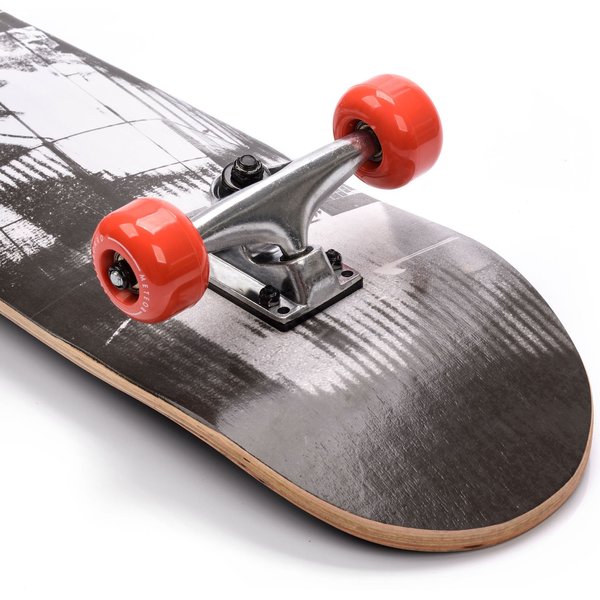 Deskorolka jest odpowiednio wyprofilowana, co pozytywnie wpływa na jakość jazdy. 9-warstwowy deck wykonany został z chińskiego klonu, który jest bardzo wytrzymały i odporny na uderzenia. Kolejną zaletą jest antypoślizgowa powierzchnia decku oraz poliuretanowe kółka, które bez problemu dostosują się do podłoża.