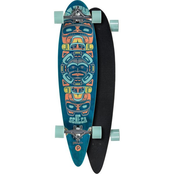 Longboard Seneca to doskonałe połączenie stabilności i szybkości, co zapewnia deska o długości 96,5 cm i szerokości 22,9 cm. Wykonana została z 9 warstw rosyjskiej brzozy. Ma wklęsły kształt. Środek ciężkości położony jest nisko, co zapewnia lepszą stabilizację podczas jazdy. Wysokiej jakości aluminiowe trucki mają idealną geometrię, co bardzo ułatwia sterowanie deskorolką. Tuleje o bardzo wysokim odbiciu przyczyniają się do doskonałej wydajności. Deskorolka jest napędzana szybkimi i twardymi kółkami, co w połączeniu z łożyskami ABEC 9 znajduje kompromis między szybkością i wytrzymałością, a także zapewnia wiele wrażeń podczas jazdy.