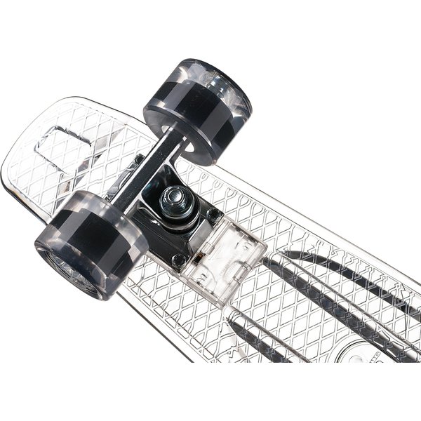 Deskorolka ta jest naprawdę trwała, bo wykonana została z odpornego na uszkodzenia tworzywa sztucznego. To właśnie ono zapewnia długą żywotność sprzętu, znacznie wyższą niż w przypadku drewnianych deskorolek. Ale plastik ten to też pewność odpowiedniej przyczepności, o co dba górna "kratownica", dzięki której stabilnie i szybko pomkniesz przez miasto. Tym szybciej że łożyska ABEC-7 oraz trwałe kółka z PU o twardości 78A zapewniają to, co najważniejsze - wysokie prędkości, idealne do jazdy rekreacyjnej, oraz wysoką absorpcję drgań i nierówności, co podnosi stabilność. Wbudowane diody LED sprawiają, że kolorowa całość zwraca na siebie uwagę i jest świetnie widoczna także po zmroku.