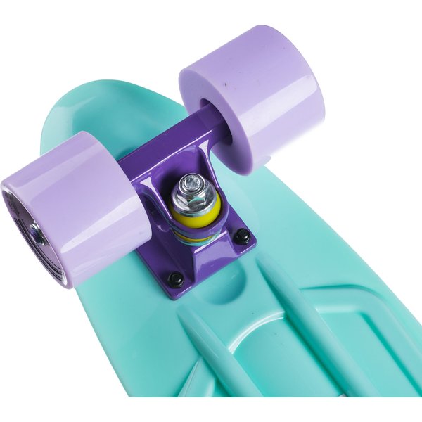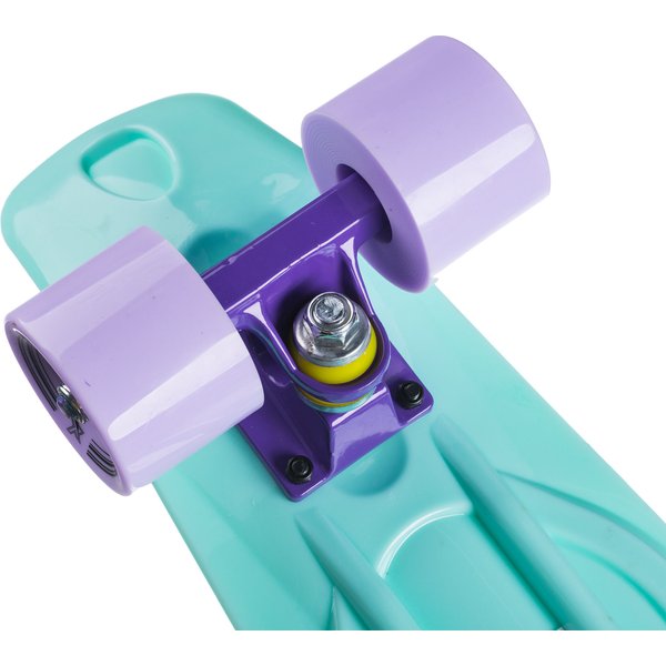 Ma nie tylko świetne kolory, i to od decku począwszy, a na kołach kończąc. Jest po prostu doskonała! Wykonana z mocnego tworzywa sztucznego mimo niewielkiej wagi jest niemal nie do zdarcia. Do tego kratownica na górze gwarantuje idealną przyczepność, czyli też bezpieczeństwo jazdy. Tylna strona deski jest lekko wygięta, uniesiona ku górze, co pozwoli Ci nabrać prędkości i jechać dynamicznie. Ponieważ łożyska ABEC-5 i absorbujące drgania kółka zapewniają satysfakcjonujące prędkości i płynną jazdę, jest to świetna deskorolka dla dziecka!