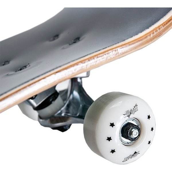 Deskorolka Tetragon marki Allright zdecydowanie wyróżnia się grafiką. Posiada mocny deck z wysokiej jakości klonu 9-cio warstwowego. Jej maksymalnie obciążenie wynosi 100 kg, więc każdy może z niej skorzystać. Łożyska ABEC 7 CARBON zapewnią optymalną dynamikę jazdy, a kauczukowe kółka są odpowiedzialne za amortyzację wstrząsów. Aluminiowe trucki heavy duty zagwarantują bezproblemową sterowność i tym samym panowanie nad deską.