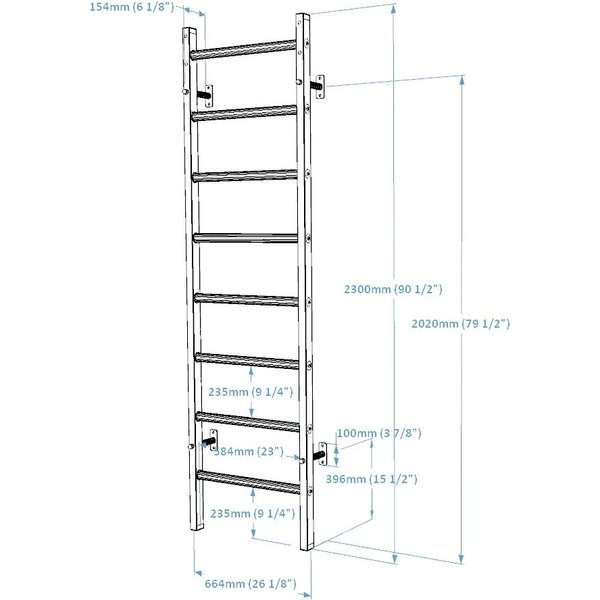 • drabinka gimnastyczna BenchK z metalowymi profilami i 8 bukowymi szczeblami