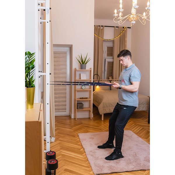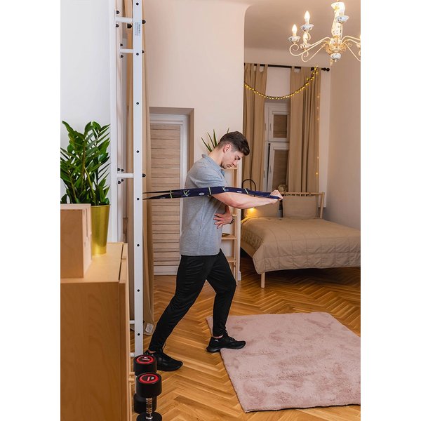 Wyróżnia się minimalistycznym, eleganckim designem, który doskonale wpasuje się w każde wnętrze, dodając mu nowoczesnego charakteru. Wykonana z solidnej metalowej konstrukcji w połączeniu z ręcznie olejowanymi drewnianymi elementami, stanowi nie tylko narzędzie do ćwiczeń, ale również stylowy element dekoracyjny. Jednym z największych atutów drabinki BenchK jest jej uniwersalność. Dzięki możliwym do dodania akcesoriom, takim jak regulowany drążek, poręcze do ćwiczeń czy kółka gimnastyczne, można w prosty sposób stworzyć kompaktową przestrzeń treningową dostosowaną do indywidualnych potrzeb. To rozwiązanie pozwala na realizację różnorodnych ćwiczeń - od treningu siłowego, poprzez mobilność stawów, aż po cardio i rozciąganie. Wystarczy jeden metr kwadratowy, aby cieszyć się pełnowartościowym treningiem w zaciszu własnego domu.