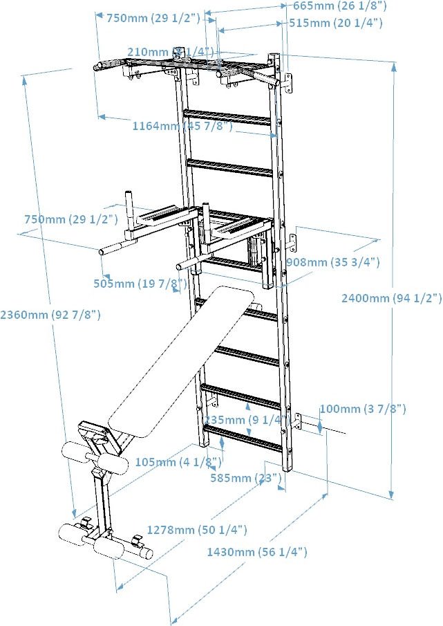 - w zestawie: drabinka, metalowy drążek, poręcze, ławka treningowa
