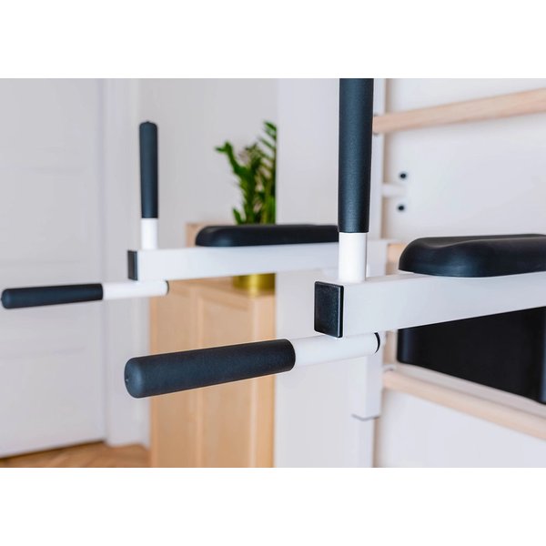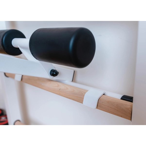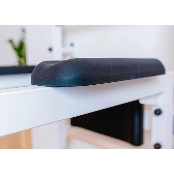 Jej elegancki design i minimalna zajmowana przestrzeń sprawiają, że idealnie wpisuje się w każde wnętrze, dodając mu nowoczesnego charakteru. Główną zaletą tego produktu jest jego wszechstronność. Dzięki zintegrowanemu drążkowi do podciągania z sześcioma antypoślizgowymi uchwytami, użytkownicy mogą wykonywać szeroki zakres ćwiczeń wzmacniających mięśnie pleców, ramion oraz korpusu. To innowacyjne rozwiązanie pozwala na różnorodność treningów, od klasycznego podciągania po bardziej zaawansowane ćwiczenia z użyciem taśm oporowych, które wspierają rozciąganie i mobilność kręgosłupa. Poręcze do ćwiczeń, wyposażone w podłokietniki i oparcie wykonane z integralnego poliuretanu, zapewniają komfort i trwałość użytkowania. Łatwość czyszczenia i nowoczesny wygląd tych elementów to dodatkowe atuty, które docenią wymagający użytkownicy.