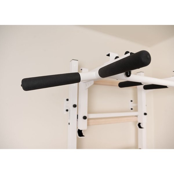 To wszechstronne urządzenie, które z łatwością wkomponuje się zarówno w domowe wnętrze, jak i w przestrzeń biurową czy publiczną. Jego minimalistyczny design i staranne wykonanie nie tylko dodają uroku każdemu pomieszczeniu, ale przede wszystkim umożliwiają realizację szerokiej gamy ćwiczeń, skutecznie oszczędzając czas i przestrzeń. Największym atutem drabinki BenchK jest jej wielofunkcyjność. Dzięki regulowanemu metalowemu drążkowi do podciągania, wyposażonemu w sześć antypoślizgowych uchwytów, użytkownik ma możliwość wykonywania różnorodnych ćwiczeń siłowych. Drążek pełni także funkcję uchwytu na sztangę, co dodaje zestawowi dodatkowej wartości dla osób trenujących siłowo. Zdejmowana konstrukcja drążka oraz możliwość jego regulacji wysokości sprawiają, że sprzęt z łatwością dostosowuje się do wzrostu i indywidualnych potrzeb każdego użytkownika.